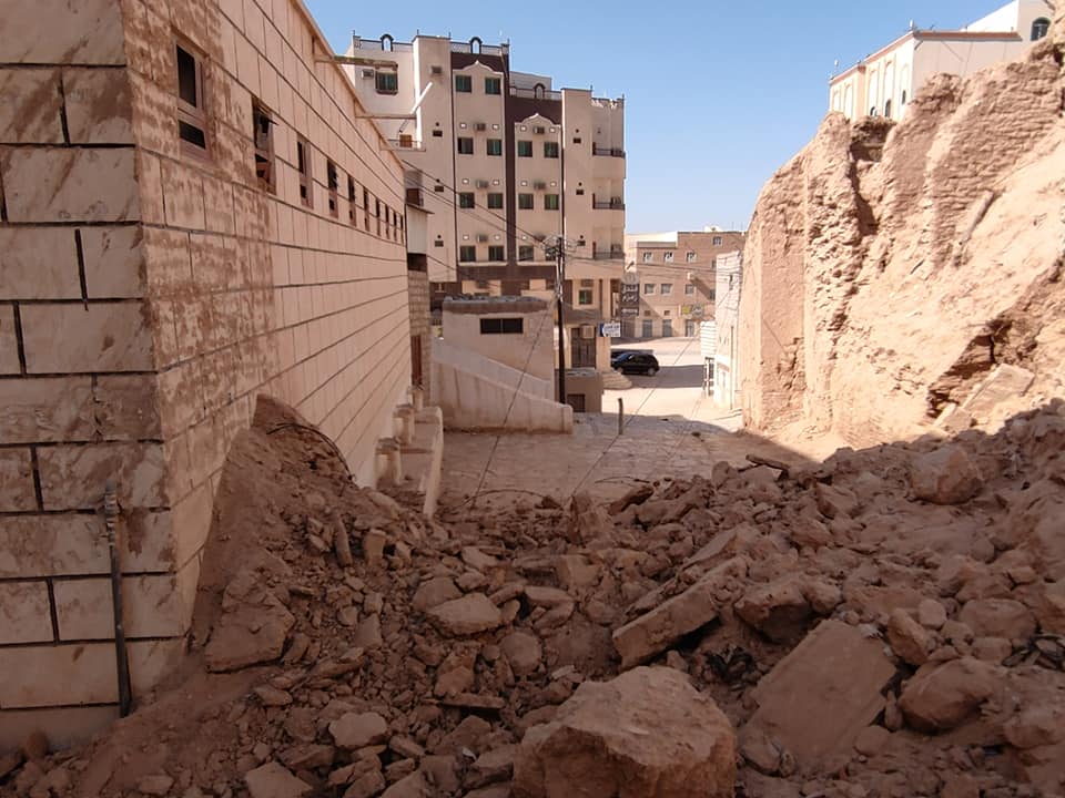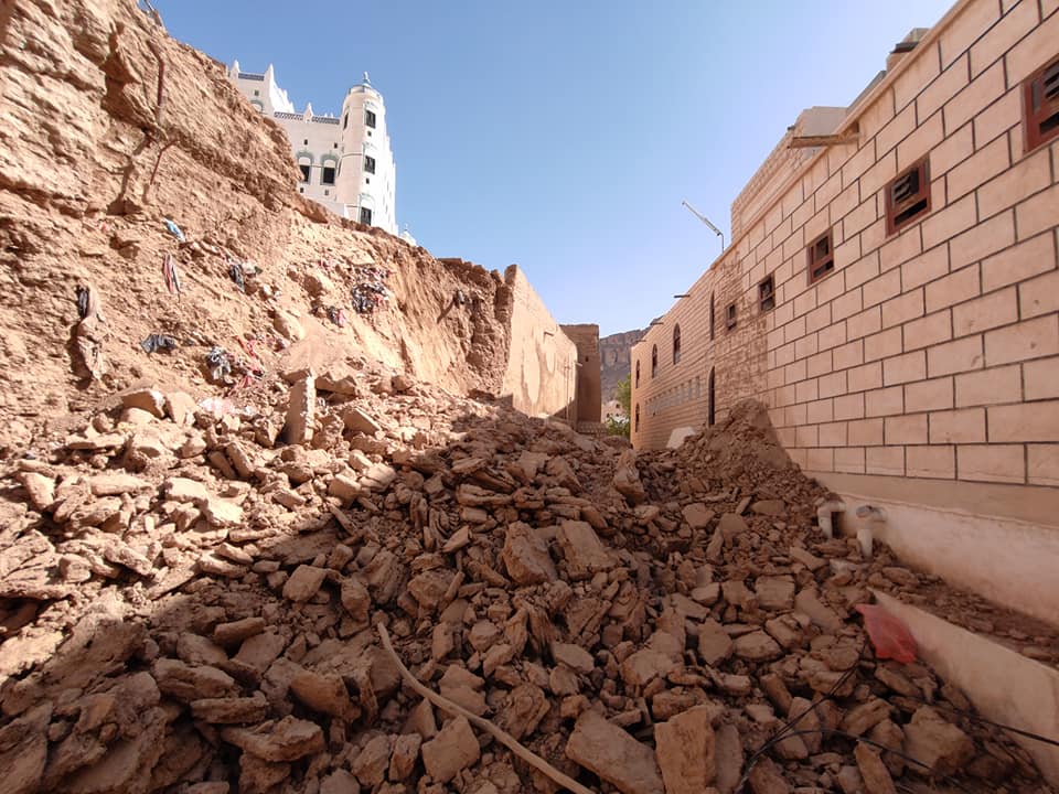 وأكد مدير الهيئة العامة للآثار والمتاحف بوادي حضرموت الدكتور حسين العيدروس إنهيار أجزاء واسعة من سور القصر بالجهة الغربية.