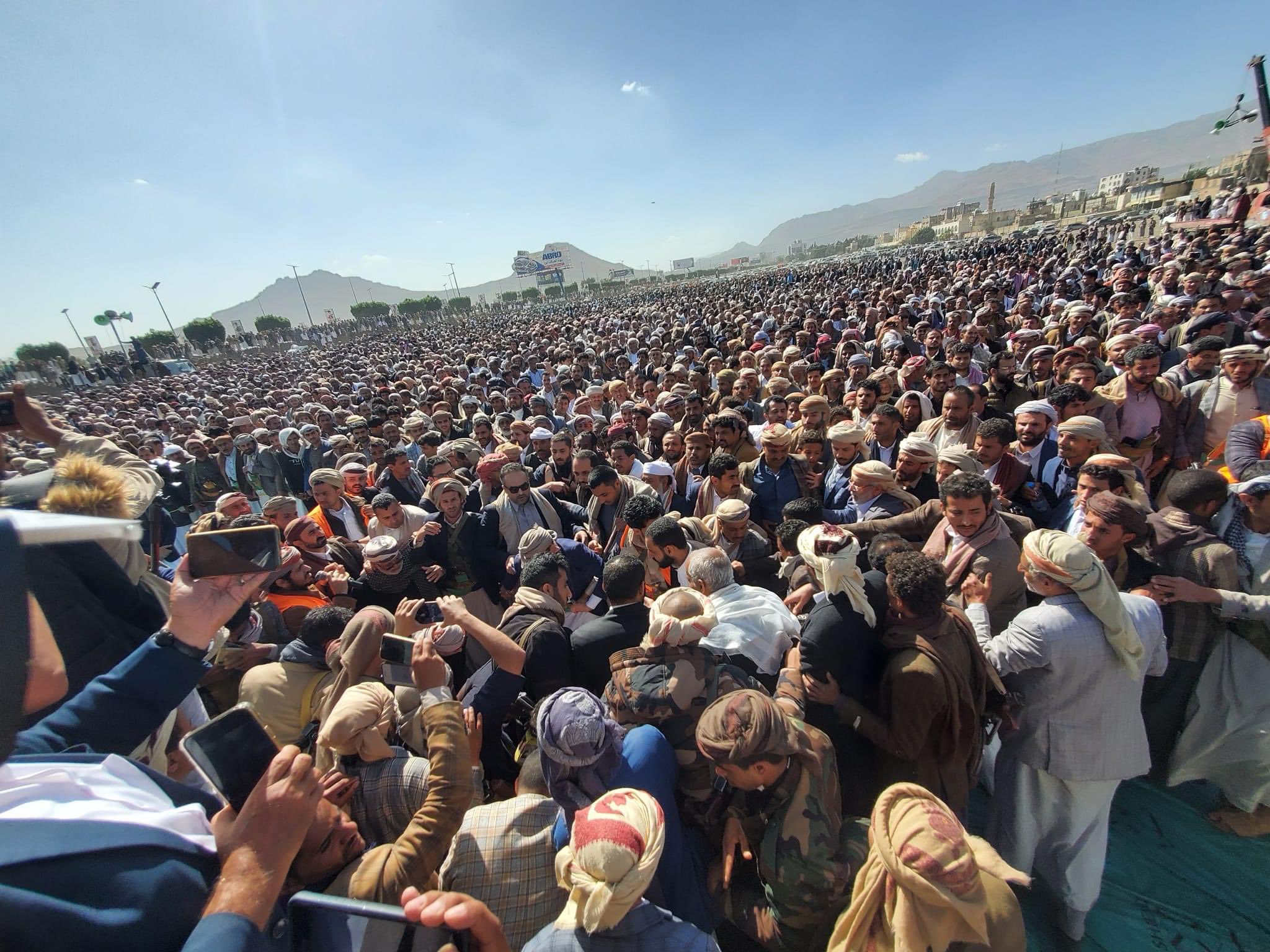 في مشهد جنائزي مُهيب.. آلاف اليمنيين يشيعون جثمان الشيخ صادق الأحمر بالعاصمة صنعاء (صور)