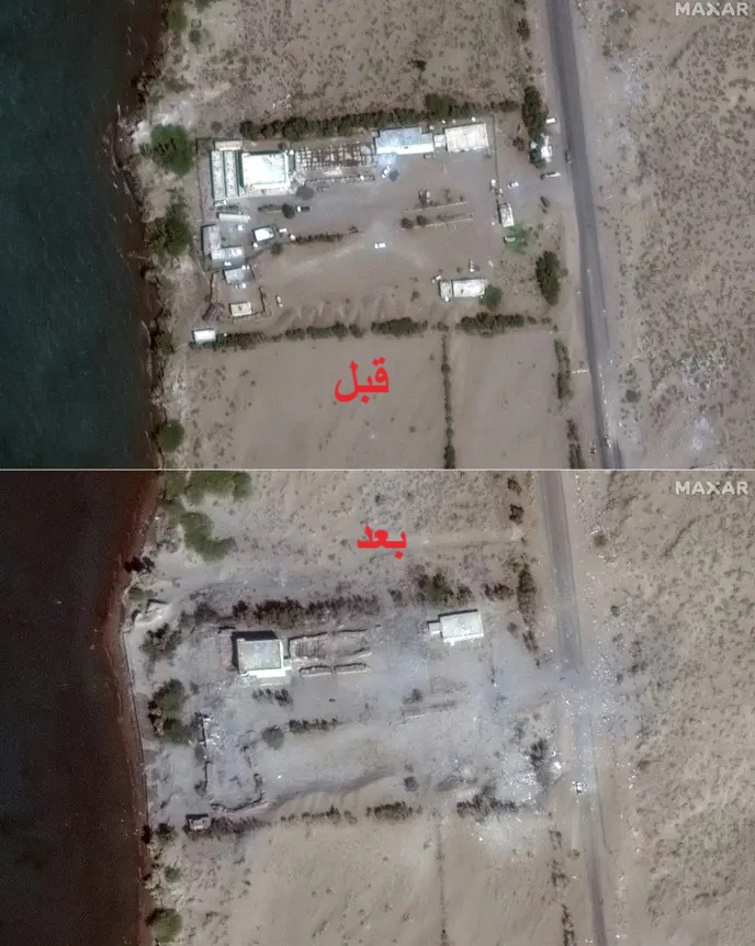 وأظهرت الصور تلك المواقع قبل الغارات وبعدها، حيث ظهرت مدمرة بالكامل.
