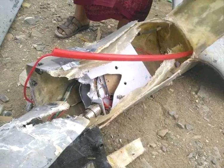 وتداول ناشطون على مواقع التواصل صورا للطائرة وهي مكن نوع صماد التي تمتلكها جماعة الحوثي.