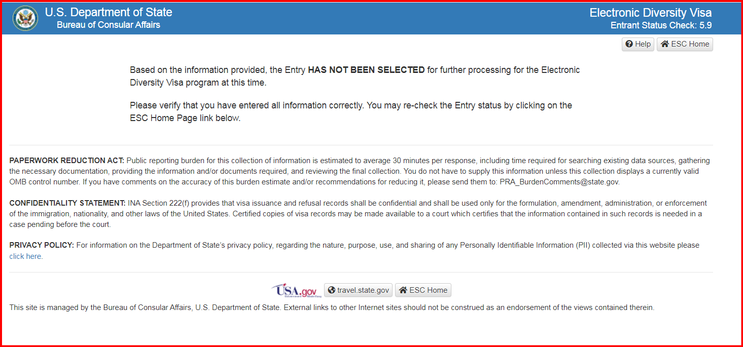في حال قبول طلبك للهجرة الى امريكا ستظهر لك بعد تعبئة البيانات الصفحة التالية: