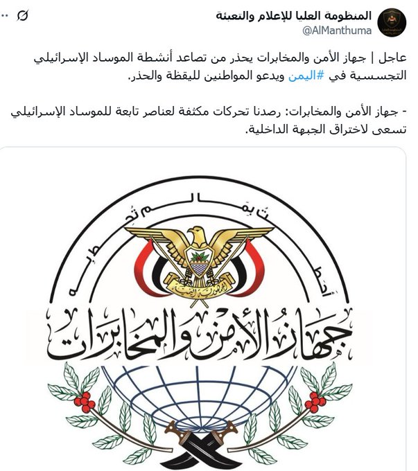 وقال الجهاز في تغريدة على حساب يحمل اسم "المنظومة العليا للإعلام والتعبئة": "رصدنا تحركات مكثفة لعناصر تابعة للموساد الإسرائيلي تسعى لاختراق الجبهة الداخلية".