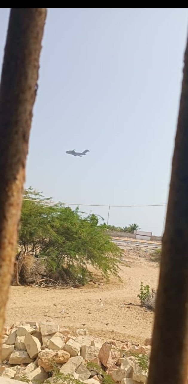 وأظهرت الصورة طائرة شحن إماراتية تحلق في أجواء حضرموت، وعلى متنها ضباط وآليات عسكرية تابعة لقوات أبوظبي، كانت تقدم دعماً لوجستياً لميليشيا المجلس الانتقالي الجنوبي الانفصالي.